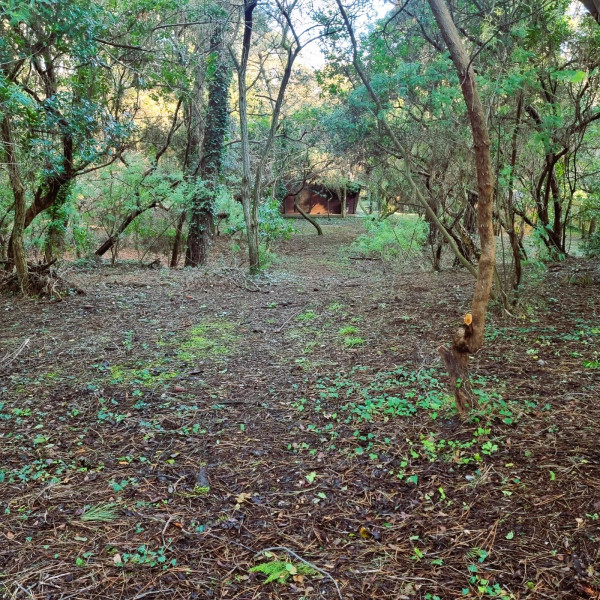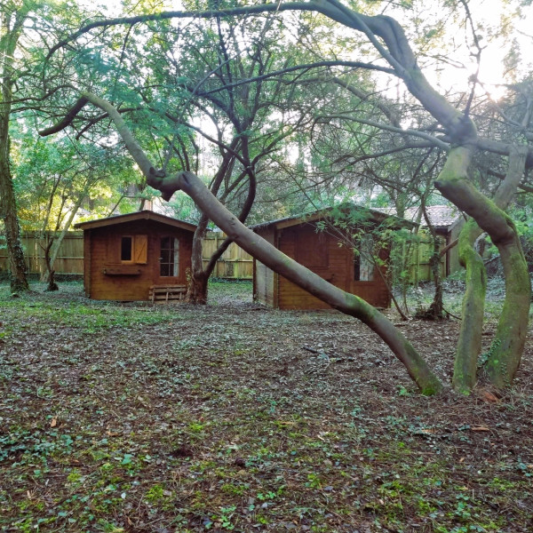 Dans un environnement préservé, entre soleil et ombrage, ce grand terrain arboré et viabilisé comporte un chalet T3 env. 50 m², 2 abris de jardin et un garage.