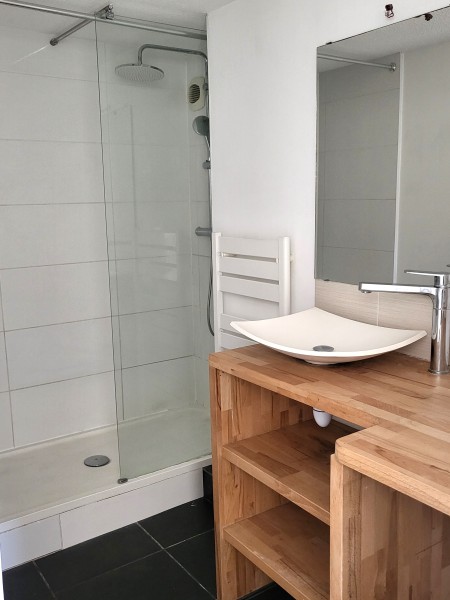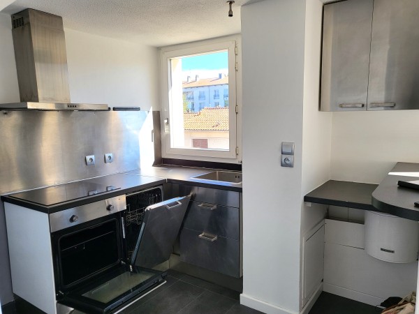 Il propose une pièce de vie lumineuse avec plafond cathédrale, une cuisine US meublée et équipée (plaque, hotte, four, lave vaisselle), 1 chambre avec placard, une SDE, WC séparés, 2 balcons ; et à l'étage, un grand palier avec fenêtre pouvant faire office de bureau, 1 chambre mansardée (2.79 m² hors carrez) et un petit grenier de 5.67 m².